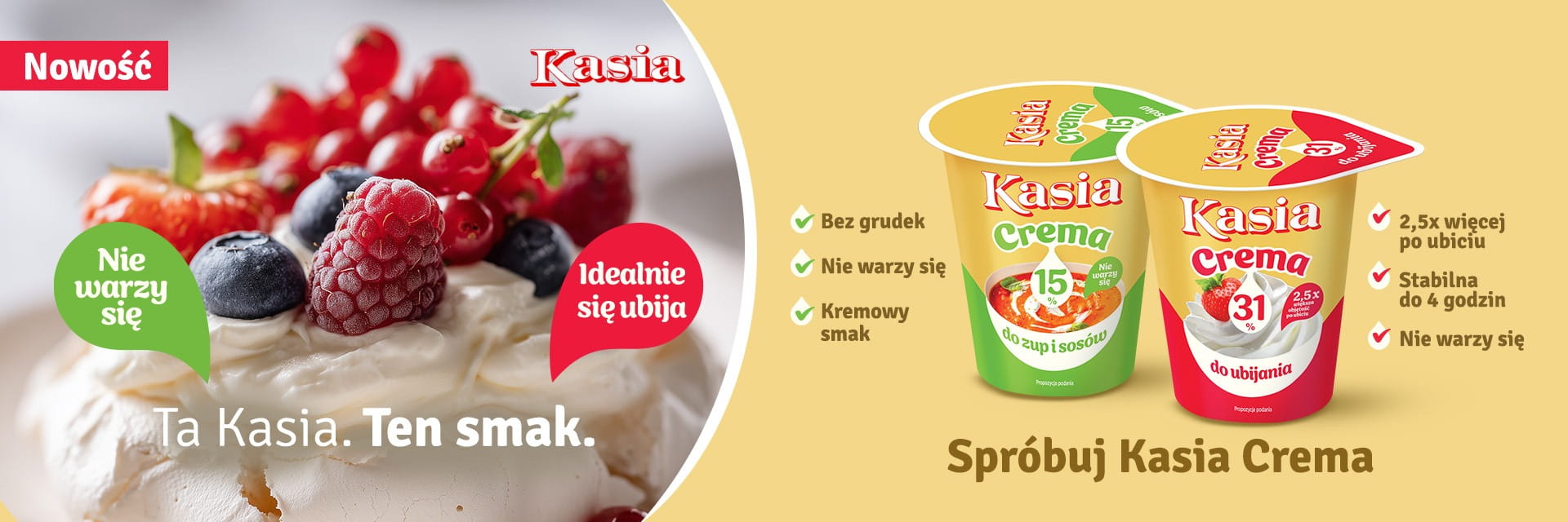 Kasia Crema 15% - do makaronów, zup i sosów - nie warzy się i zapewnia kremowy smak.